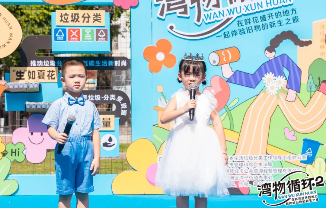 “灣物循環(huán)2”環(huán)保集市由垃圾分類主題表演拉開序幕,活動邀請了灣仔街道轄區(qū)內(nèi)文盛幼兒園和新源幼兒園的小朋友們進(jìn)行表演。
