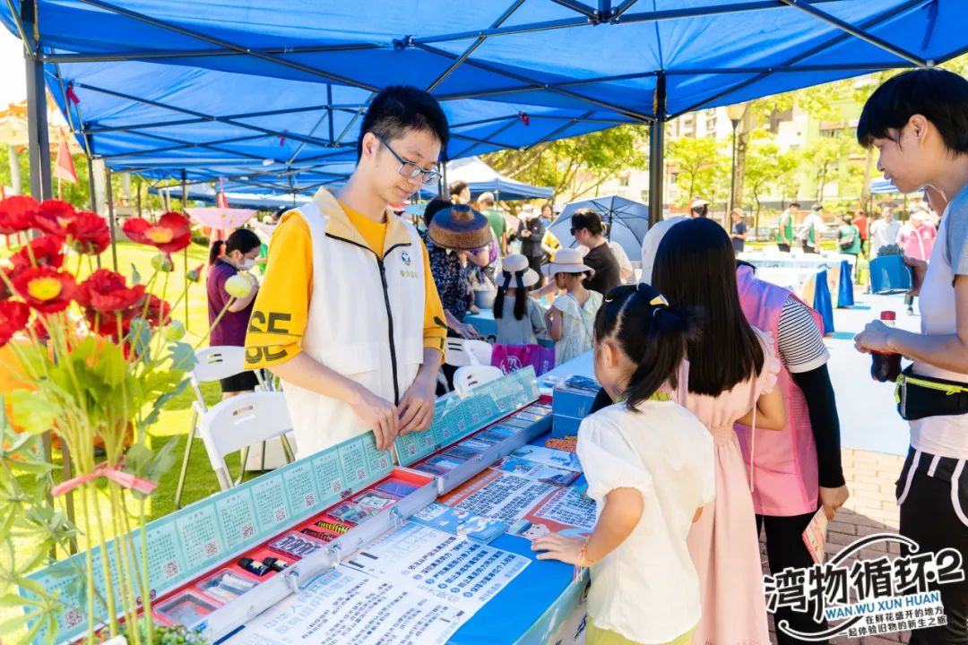 普法宣傳、志愿服務(wù)、舊物義賣、手工DIY、風(fēng)味小吃、趣味游戲等共同構(gòu)成了本次環(huán)保集市的公共攤位,灣仔街道城管辦順應(yīng)本次活動主題,結(jié)合灣仔“兩鮮”文化特色,在現(xiàn)場特別設(shè)置了“‘生’如夏花·再生資源煥新處”,號召市民收集生活中常見的可回收物,如易拉罐、塑料瓶、紙板箱等等,打包好后帶至環(huán)保集市活動現(xiàn)場,按一定數(shù)量投放至回收處,換取灣仔時令鮮花。