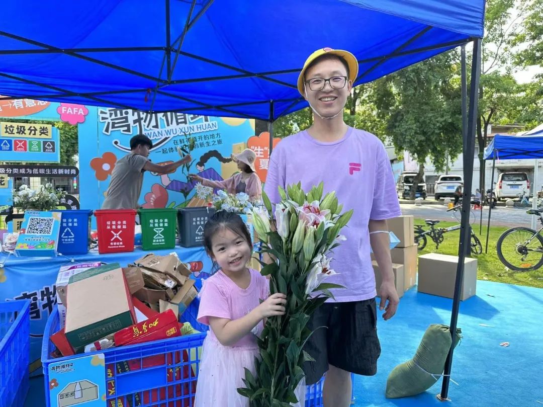 城管辦工作人員向大家詳細(xì)講解了兌換規(guī)則后,情緒高漲的居民紛紛回家?guī)砹舜罅靠苫厥瘴铮瑐€別居民更是“小箱套大箱”帶來了滿滿一車的紙皮和塑料瓶,成功抱走了一大把新鮮多頭百合?,F(xiàn)場的攤主和大小朋友們也紛紛在“生”如夏花攤位前駐足了解,居民兌換氛圍熱烈,環(huán)保集市上生機盎然。