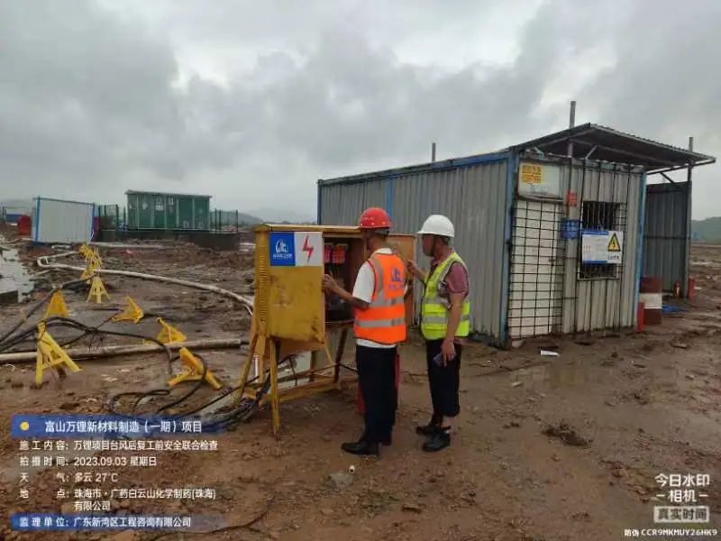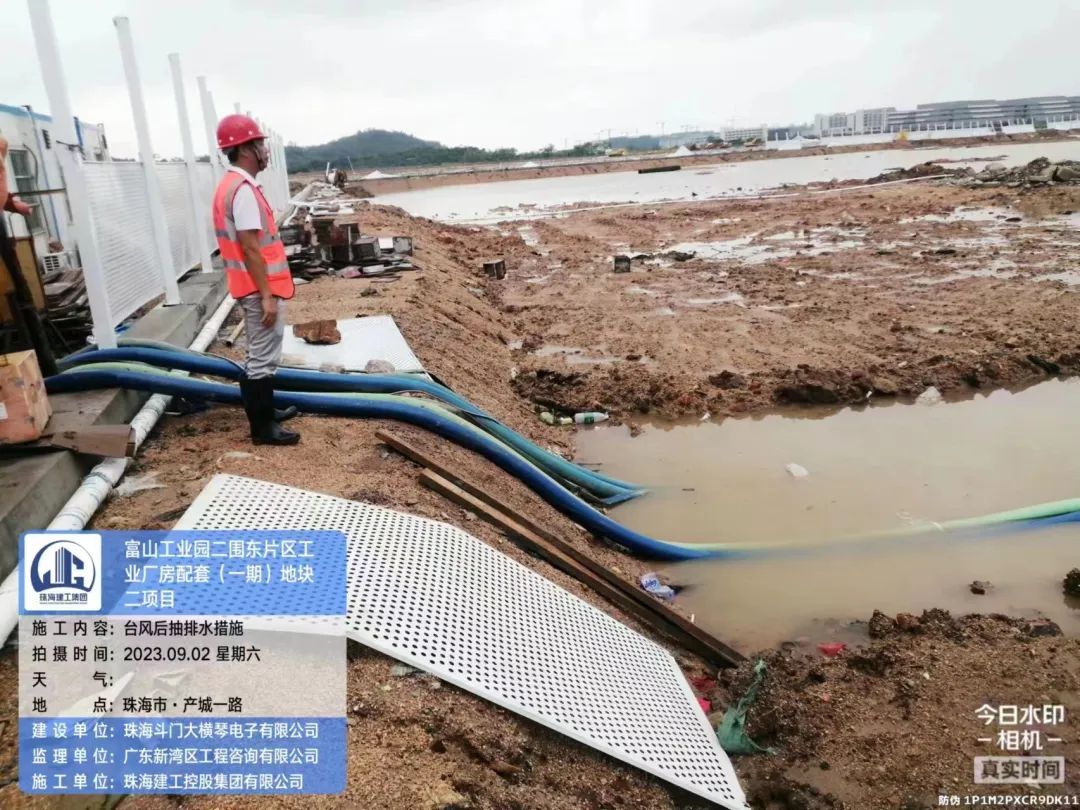 在斗門大橫琴5.0產(chǎn)業(yè)新空間萬鋰新材料(一期)項目現(xiàn)場,開展了臺風后復(fù)工復(fù)產(chǎn)安全大檢查,現(xiàn)場組織排水、圍擋修復(fù)各項工作。