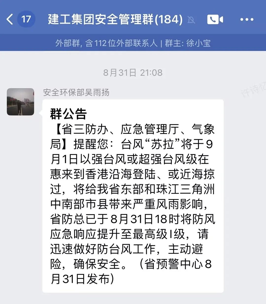 在臺風登陸前后,珠海建工集團所在項目總體情況穩(wěn)定。