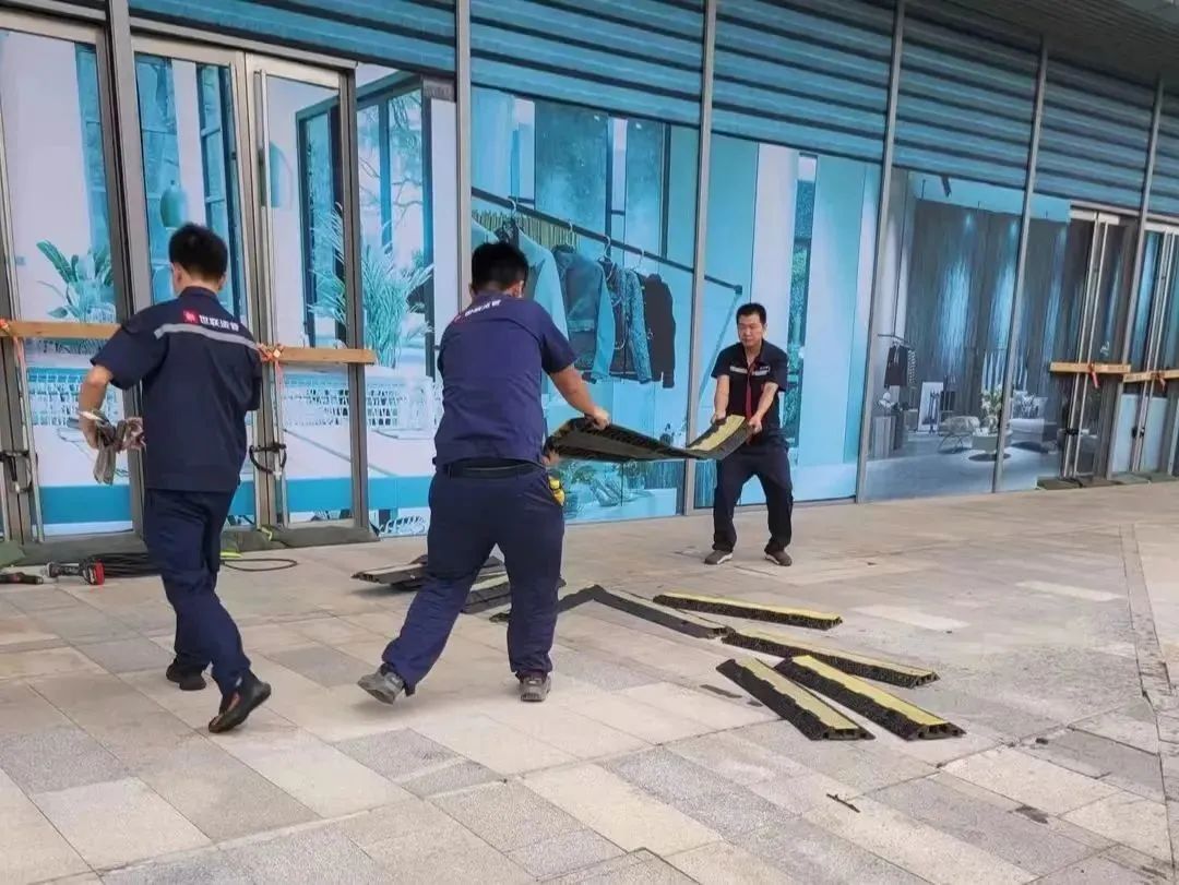 截至下午15時(shí),口岸公司組織施工單位和物業(yè)服務(wù)單位在F區(qū)防臺(tái)堆放沙包總數(shù)1230個(gè),安排水泵11臺(tái)、吸水車2臺(tái);對(duì)口岸報(bào)關(guān)樓、貨車查驗(yàn)場(chǎng)等轄區(qū)的易吹動(dòng)物品,提前做好加固工作;對(duì)口岸通關(guān)區(qū)域多次實(shí)地排查,對(duì)不經(jīng)常出入的玻璃門提前采用防臺(tái)風(fēng)加固件或木方先進(jìn)行加固和堆放沙袋,并對(duì)已加固的玻璃門做好溫馨提示;對(duì)口岸前廣場(chǎng)U行車道、地下車庫(kù)、下沉庭院等易積水點(diǎn)堆放沙袋;在口岸四樓累計(jì)轉(zhuǎn)移安置約100名人員,確保人均3天用餐需求。