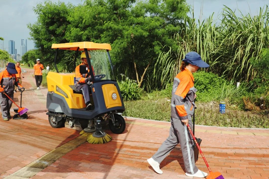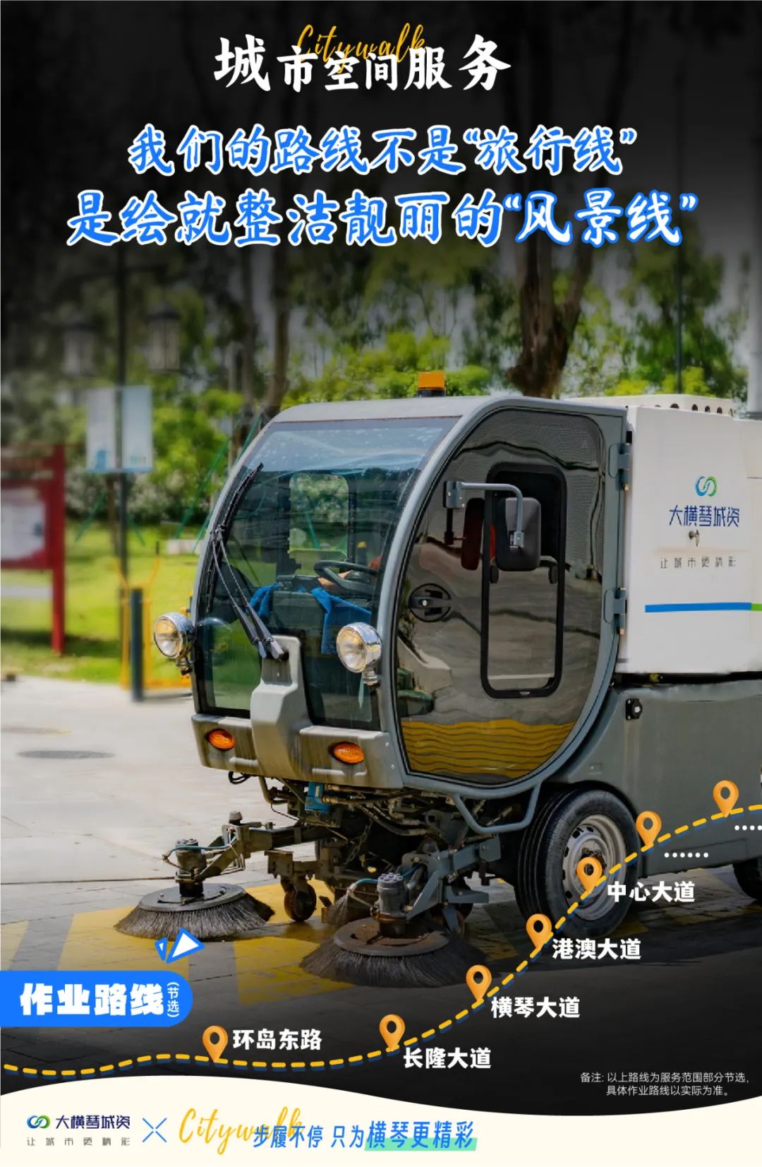 在合作區(qū)不同的道路街巷,都遍布著環(huán)衛(wèi)工作者的Citywalk路線(xiàn),在市政道路上,他們熟練地駕駛著沖洗車(chē)、機(jī)掃車(chē)、高壓清洗車(chē)等作業(yè)車(chē)輛,對(duì)城市路面進(jìn)行灑水降塵、清掃沖洗,在人行道、在海堤、在公交候車(chē)亭、在公廁里,在社區(qū)內(nèi)街小巷、在村居內(nèi)房前屋后,他們循環(huán)保潔的身影也隨處可見(jiàn),“沖、掃、吹、清、運(yùn)、巡”,一套環(huán)衛(wèi)作業(yè)組合拳,讓合作區(qū)容光煥發(fā)。