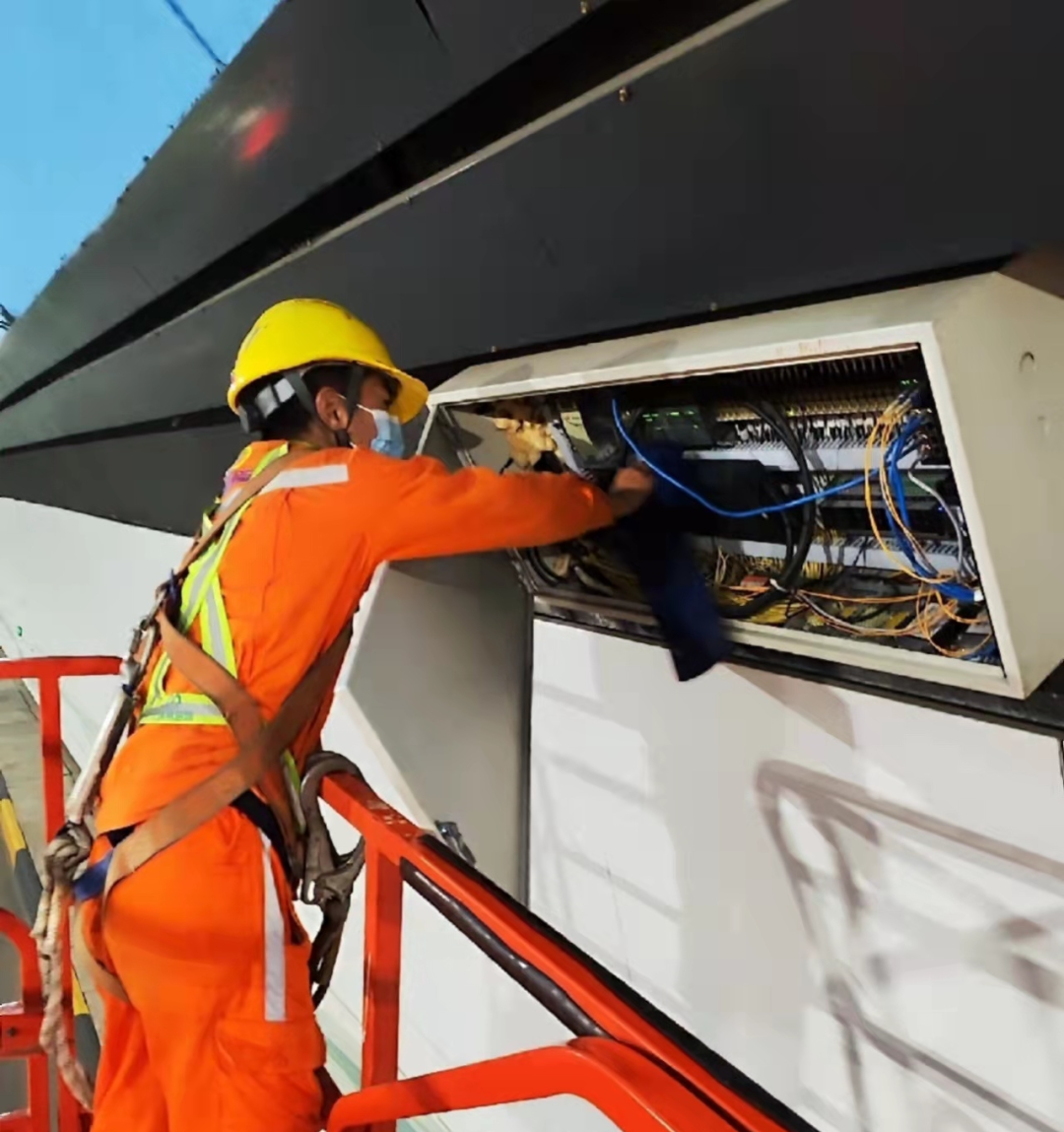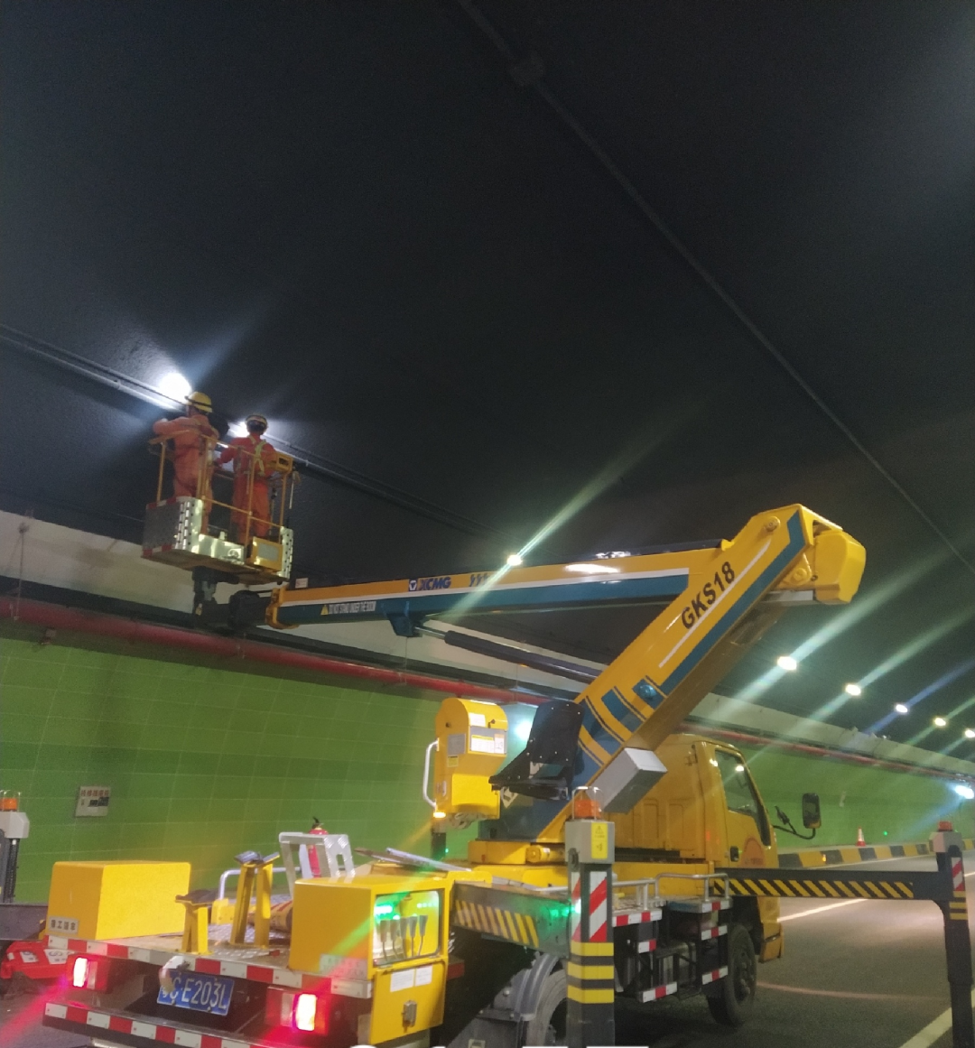 利用登高作業(yè)車(chē)到達(dá)隧道頂部進(jìn)行清潔維保
