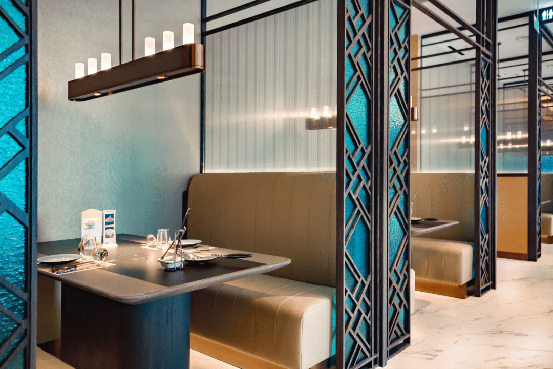 幾何裝飾拼接詩意畫幕,現(xiàn)代輕奢風(fēng)格,舒適恬靜,是商務(wù)宴請和親友聚會的絕佳選擇。