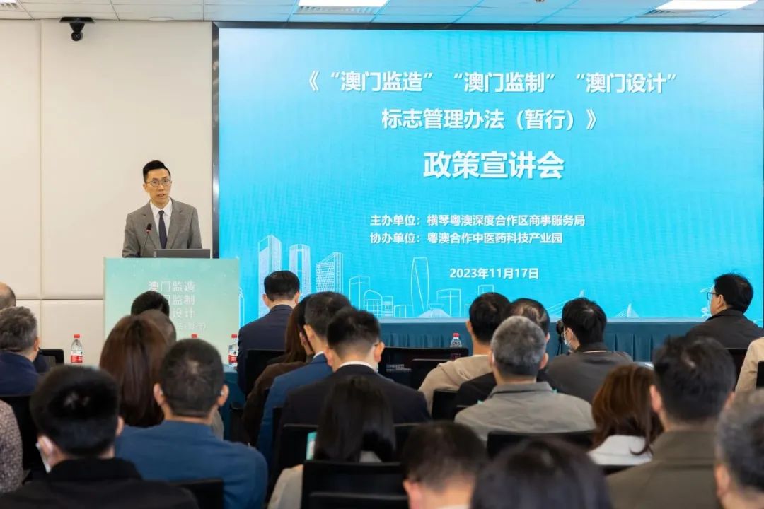 11月17日,《“澳門監(jiān)造”“澳門監(jiān)制”“澳門設(shè)計(jì)”標(biāo)志管理辦法(暫行)》(以下簡(jiǎn)稱《管理辦法》)政策宣講會(huì)在橫琴粵澳深度合作區(qū)(以下簡(jiǎn)稱合作區(qū))琴澳國(guó)際法務(wù)集聚區(qū)舉行。此次宣講活動(dòng)由合作區(qū)商事服務(wù)局主辦,由參與《管理辦法》起草的珠海大橫琴集團(tuán)有限公司下屬企業(yè)珠海大橫琴科技發(fā)展有限公司(以下簡(jiǎn)稱大橫琴科技公司)提供支持。活動(dòng)旨在幫助企業(yè)全面了解申請(qǐng)標(biāo)志的資格條件、使用標(biāo)志的具體要求,以及標(biāo)志運(yùn)行管理的保障機(jī)制等。