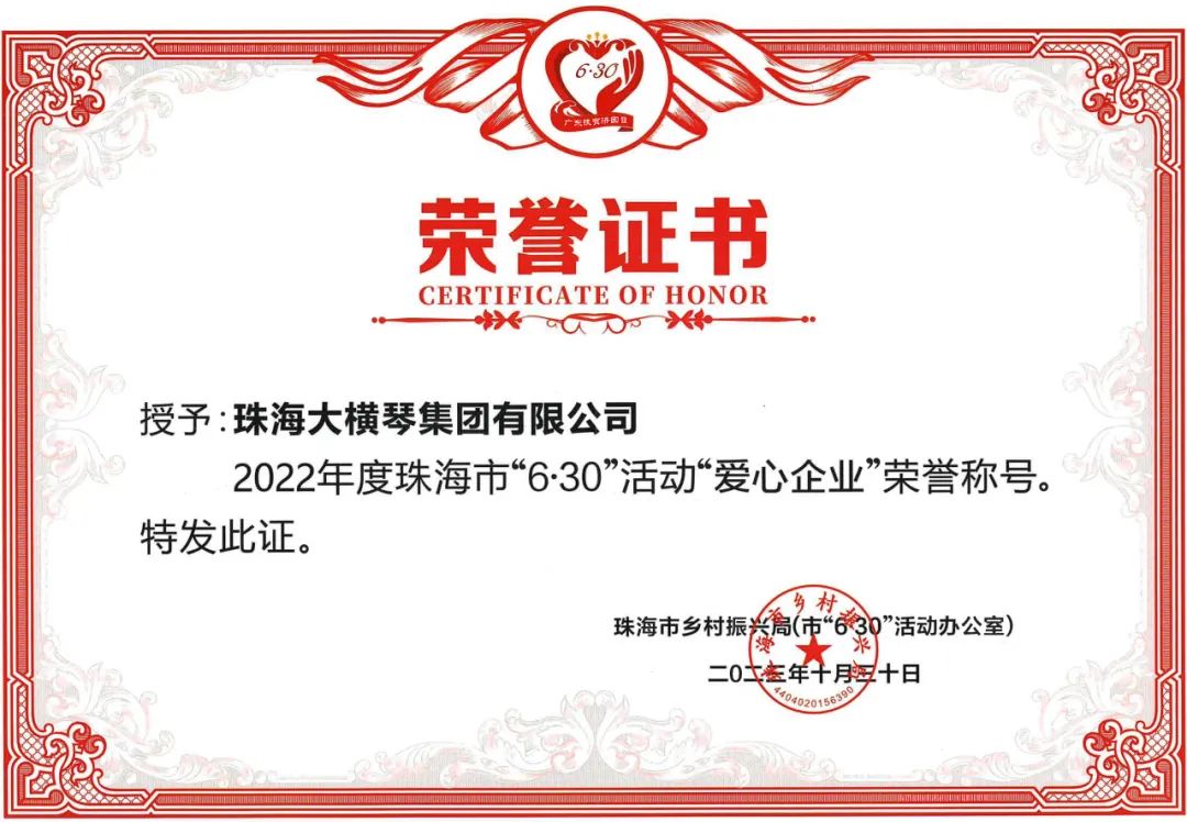 為深入貫徹黨的二十大和中央農(nóng)村工作會(huì)議精神,落實(shí)市委、市政府關(guān)于統(tǒng)籌實(shí)施鄉(xiāng)村振興戰(zhàn)略和“百縣千鎮(zhèn)萬(wàn)村高質(zhì)量發(fā)展工程”工作部署,匯聚更多社會(huì)力量參與“6·30”活動(dòng),鞏固脫貧成果、助力鄉(xiāng)村振興、促進(jìn)共同富裕,根據(jù)《中共珠海市委農(nóng)村工作領(lǐng)導(dǎo)小組〈關(guān)于印發(fā)珠海市2023年“6·30”助力鄉(xiāng)村振興活動(dòng)工作方案〉的通知》(珠委農(nóng)組〔2023〕6號(hào))精神,市鄉(xiāng)村振興局(市6·30活動(dòng)辦)開(kāi)展2022年度珠海市“6·30”活動(dòng)“愛(ài)心企業(yè)、愛(ài)心團(tuán)體、愛(ài)心個(gè)人”評(píng)選活動(dòng),向社會(huì)傳遞珠海人民樂(lè)善好施的精神品德,激發(fā)社會(huì)各界共襄善舉、助力鄉(xiāng)村振興。經(jīng)評(píng)審,珠海大橫琴集團(tuán)有限公司(以下簡(jiǎn)稱大橫琴集團(tuán))被授予2022年度珠海市“6·30”活動(dòng)“愛(ài)心企業(yè)”榮譽(yù)稱號(hào)。