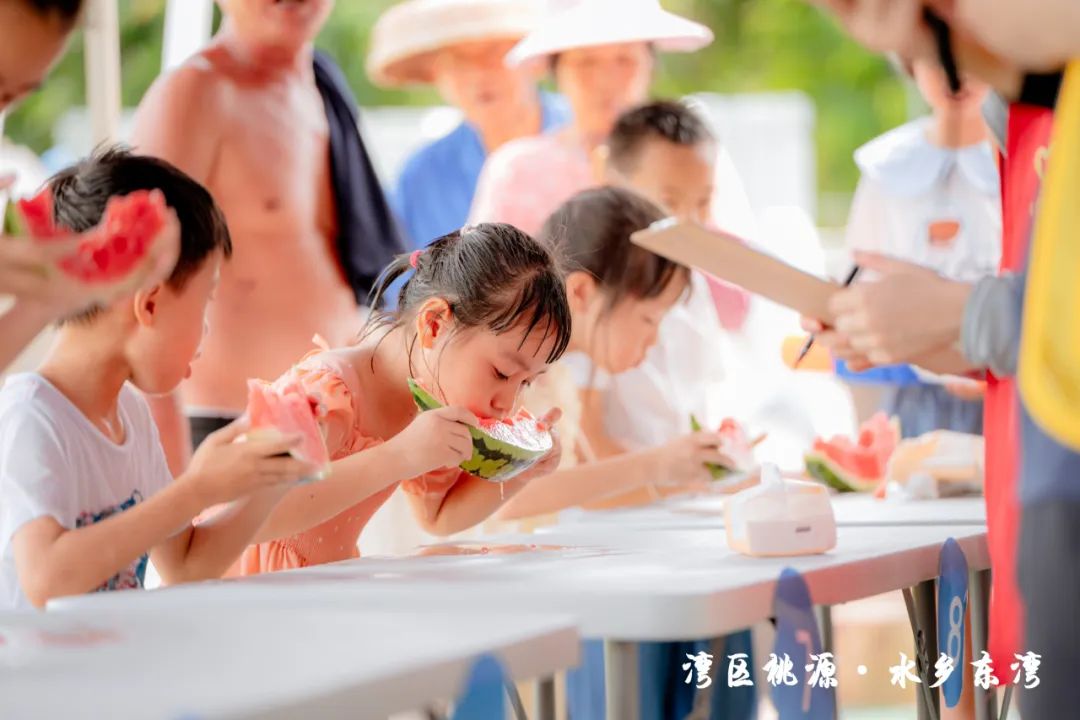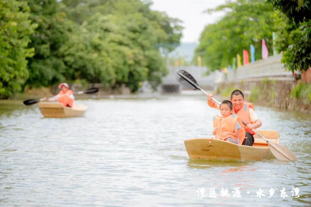 隨后,現(xiàn)場(chǎng)的水車伴著歡笑聲噴灑出陣陣水霧,也標(biāo)志著此次“東灣夏日清涼大作戰(zhàn)”活動(dòng)正式開始。在接下來的兩天時(shí)間里,活動(dòng)將充分結(jié)合東灣村民俗文化和稻田、河涌等良好的生態(tài)環(huán)境基底,通過農(nóng)艇競(jìng)渡、趣味戲水、非遺剪影、東灣美食、清涼集市等元素,將傳統(tǒng)鄉(xiāng)村元素與現(xiàn)代競(jìng)技、活動(dòng)相融合,打造一系列清涼刺激的互動(dòng)體驗(yàn)?;顒?dòng)形式豐富多樣,既有團(tuán)隊(duì)合作的競(jìng)技項(xiàng)目,也有輕松愉快的趣味游戲,還有特色清涼集市供游客休閑購物,可謂是“面面俱到”。