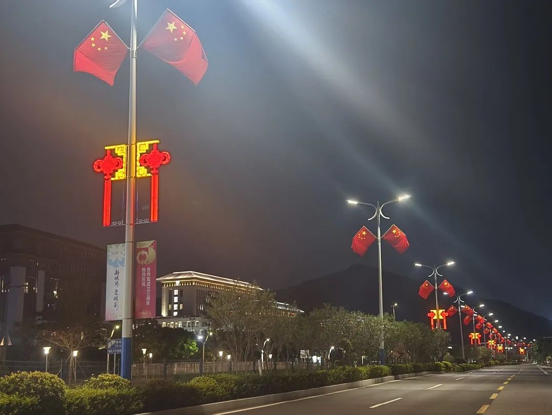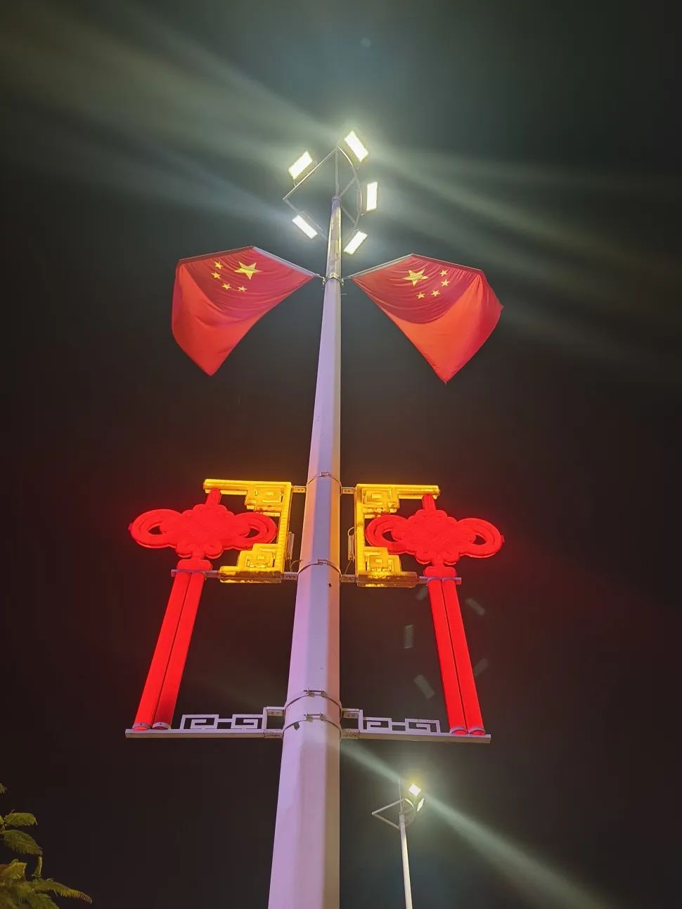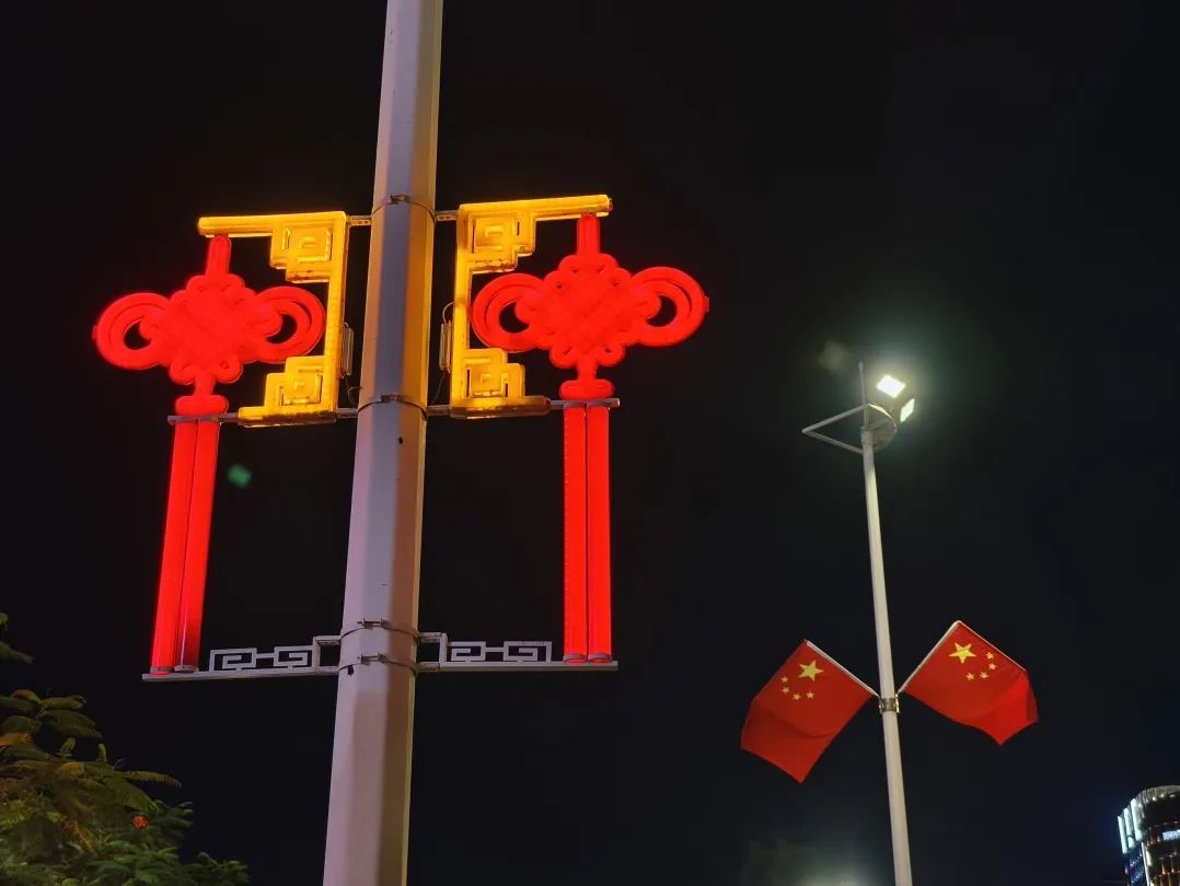 大橫琴城資在港澳大道、環(huán)島西路等重點(diǎn)路段懸掛了 230套中國結(jié),以亮麗的形象喜迎國慶。