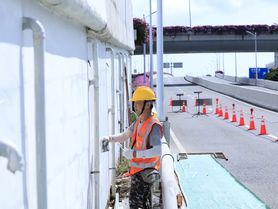 道路、橋梁作為基礎(chǔ)交通設(shè)施,也是城市景觀的重要組成部分。為打造靚麗舒適的出行環(huán)境,大橫琴城資在港澳大道立交主線橋及匝道、濠江路立交主線橋及匝道進(jìn)行防撞墻和引橋擋墻的打磨、找平、刷漆等養(yǎng)護(hù)作業(yè),施工面積達(dá)20000㎡,在美化通行環(huán)境、提升路容路貌的同時(shí),切實(shí)消除安全隱患,提升了道路通行安全系數(shù)。