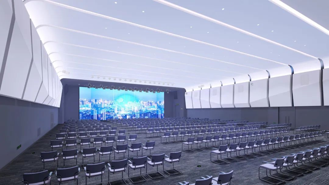 創(chuàng)新中心如山巒般扎根大地,約2萬平方米的15層空間內(nèi),實(shí)驗(yàn)室集群與共享辦公區(qū)交織;科技交流中心則似懸浮的寶石——動態(tài)金屬遮陽面紗包裹著近萬平方米的會議空間,其898平方米無柱宴會廳與468座階梯報(bào)告廳,成為珠江西岸規(guī)模最大的技術(shù)路演平臺。當(dāng)車輛經(jīng)廣珠西線駛?cè)霗M琴,這座折射天光的建筑將成為人們對橫琴科學(xué)城的第一印象。