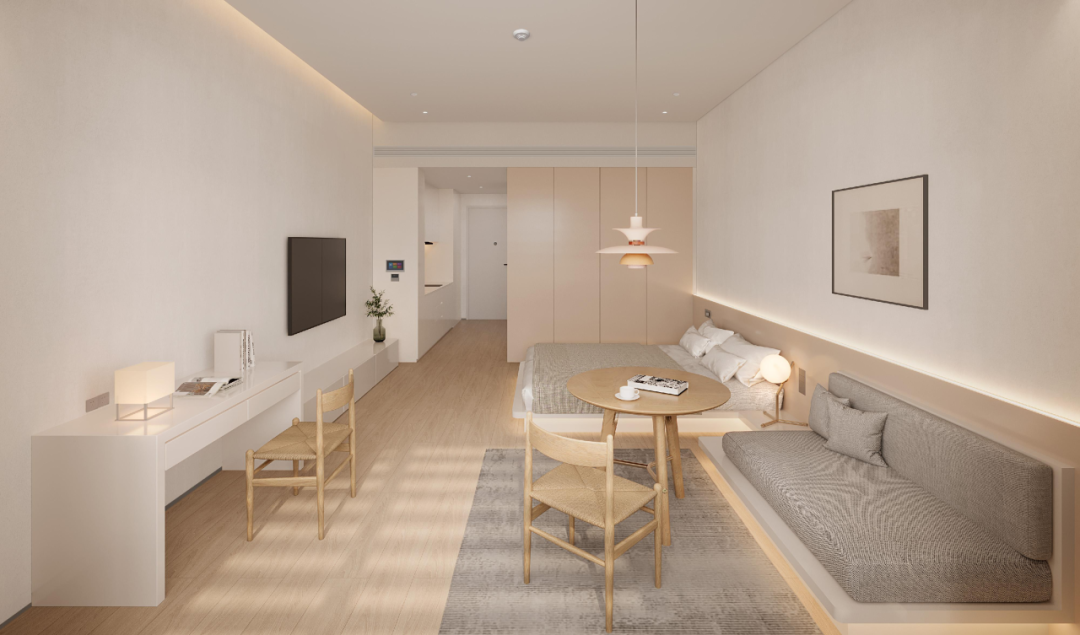 人文關(guān)懷時(shí)刻滲透生活場景。員工宿舍中,33-47平方米單間占比近90%,首層共享廚房飄散著家常煙火;專家公寓21%為一房以上戶型,引入酒店式保潔與健身服務(wù);四組分散式食堂與900平方米宴會廳通過地下廚房聯(lián)動,既能滿足日常餐飲,亦可瞬時(shí)承接千人國際會議。在這里,每一寸混凝土都承載著創(chuàng)新的重量,每一扇落地窗都映照著產(chǎn)業(yè)的未來。——這是珠光集團(tuán)對創(chuàng)新生態(tài)的溫暖承諾。